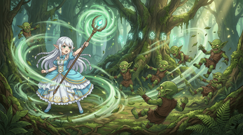 主角是一位精靈法師,她在森林中抵禦一波又一波的哥布林。遊戲的核心循環是「移動、射擊、升級」。